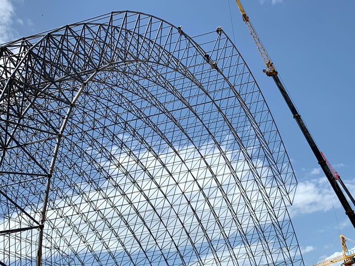 (2)网架加工前应对现场尺寸进行复测,确认无误后方可进行加工、安装;网架制作、运输、安装应遵守《空间网格结构技术规程》JGJ7-2010、《钢网架江阴螺栓球节点》JG/T 10-2009、《钢网架江阴螺栓球节点用高强度螺栓》 GB/T 16939-2016、《江阴钢结构江阴工程江阴施工规范》 GB50755-2012、《江阴钢结构江阴工程施工质量验收标准》 GB50205-2020。